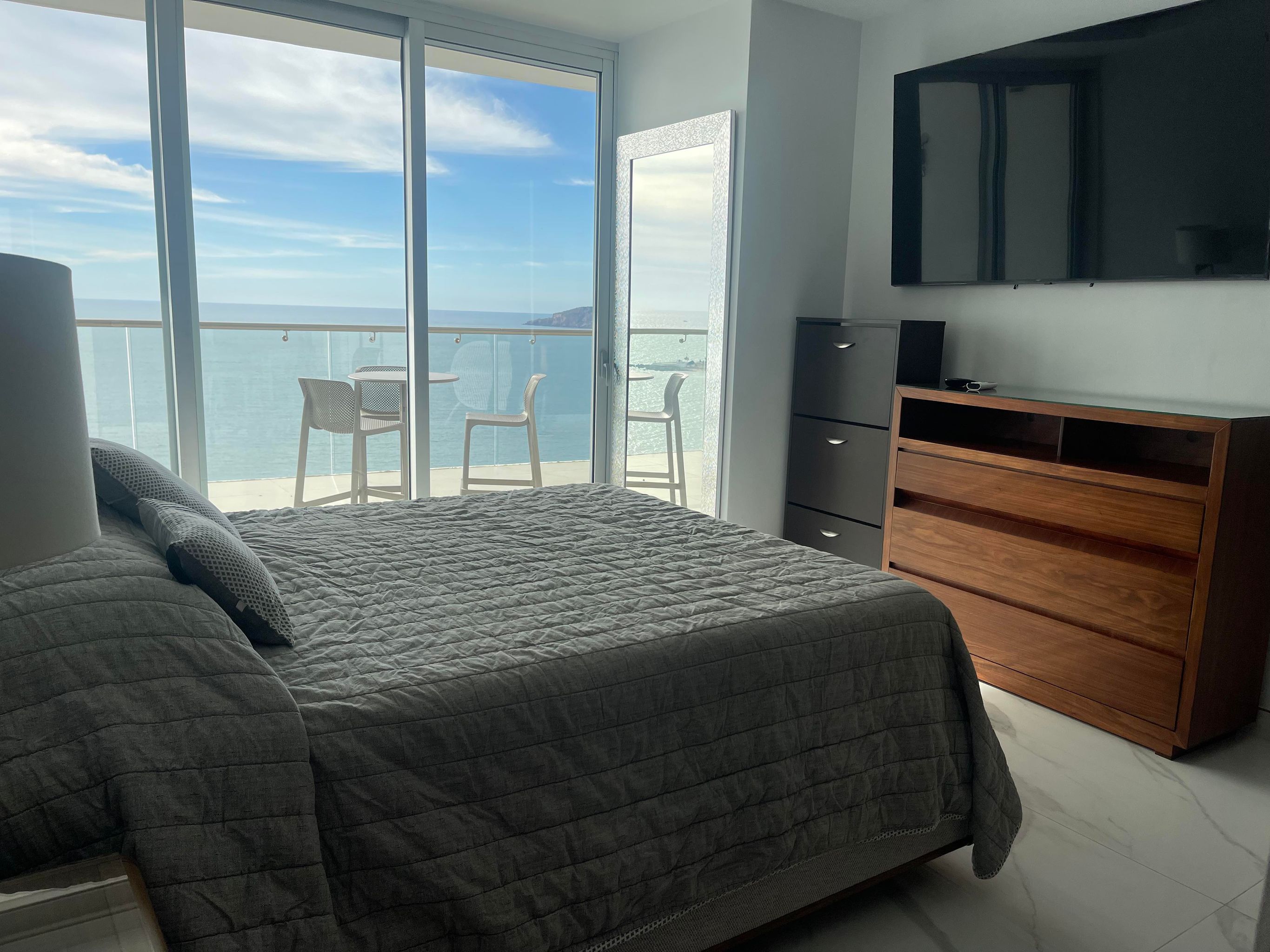 Bienvenido a Mazatlán, precioso Condominio en Sunset View en el piso 17, donde disfrutará una excelente vista panorámica de los hermosos y relajantes atardeceres y amaneceres mazatlecos. Éste espacioso y lujoso apartamento frente al mar es una joya que promete una experiencia única , se encuentra localizado en la mejor zona de Mazatlán, a tan solo 10 minutos de la Zona Dorada y 10 min del centro de la ciudad, cerca del Acuario Mazatlán y otros lugares destacados. Consta de 2 recámaras y una amplia terraza habilitada para el uso de 2 Hamacas, una barra bar y sillas confortables para su disfrute.